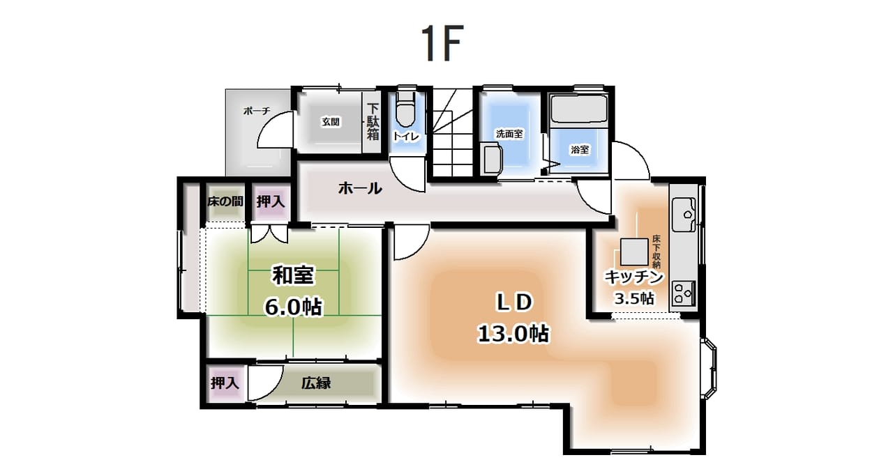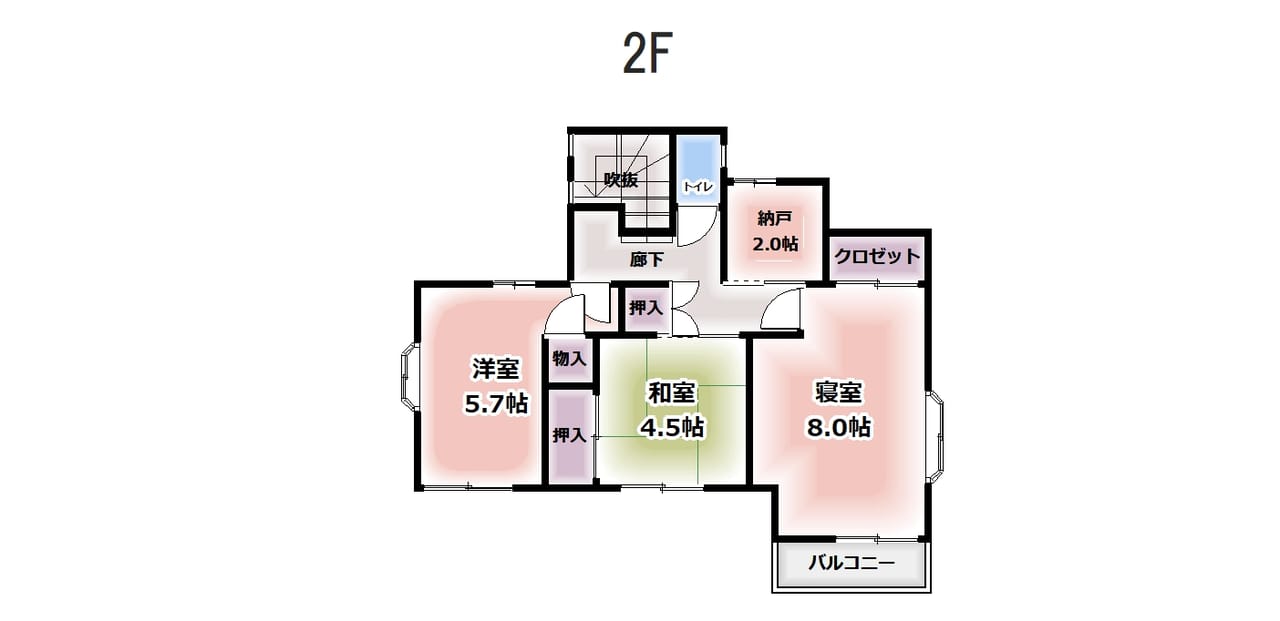 | 詳細間取 | 和6・4.5 洋8・5.7 LD13 K3.5 納戸2 | ||